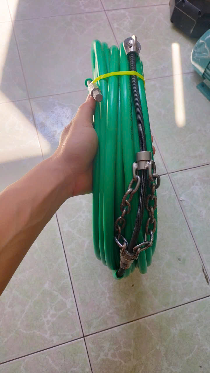 Cáp đánh xích thông cống gắn mắt xích inox giúp tăng độ bền và độ chắc chắn của sản phẩm. Với thiết kế đơn giản, dễ sử dụng, sản phẩm này là giải pháp hiệu quả cho việc thông tắc đường ống.